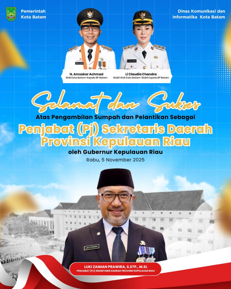 Selamat dan sukses atas pelantikan Luki Zaiman Prawira, S.STP., M.SI. Penjabat (PJ) Sekretaris Daerah Provinsi Kepulauan Riau. Semoga dapat menjalankan...