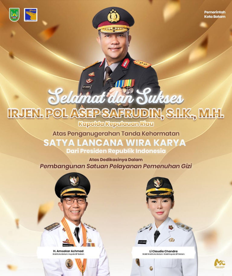 Pemerintah Kota Batam mengucapkan selamat dan sukses kepada Irjen. Pol. Asep Safrudin, S.I.K., M.H., Kapolda Kepulauan Riau, atas penganugerahan Tanda...