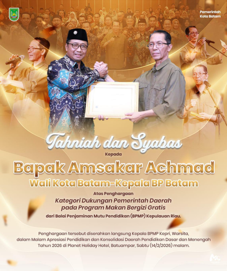 Tahniah dan Syabas kepada Wali Kota Batam, Amsakar Achmad Atas Penghargaan Kategori Dukungan Pemerintah Daerah pada Program Makan Bergizi Gratis...